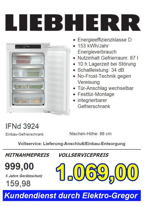 Kühl- und Gefrierschränke vieler Hersteller, entweder als Einbauvariante oder als Standgerät.