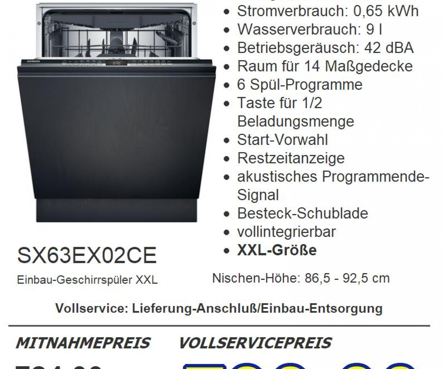 Einbau-Geschirrspüler XXL 60 cm